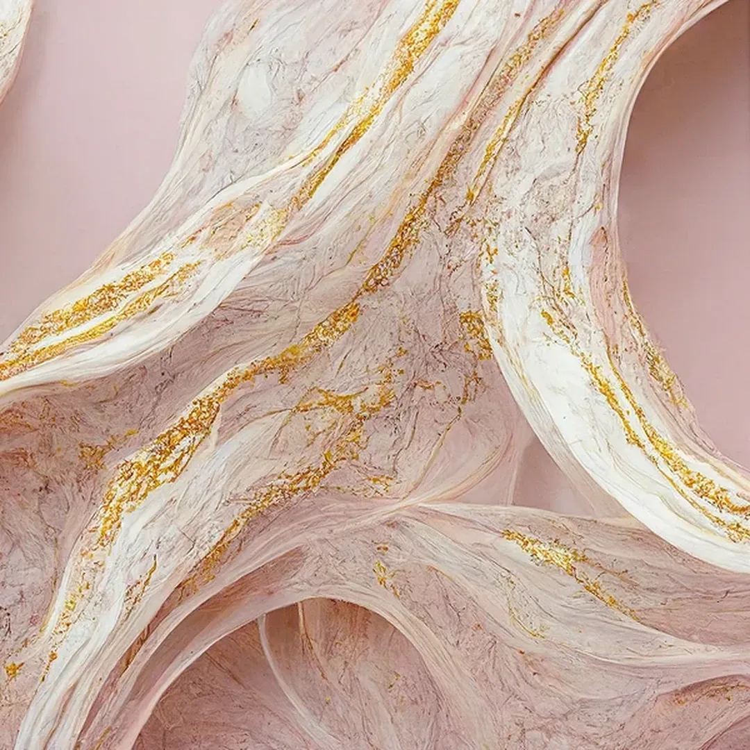 This design features a luxurious marble texture with soft pink and white tones blended harmoniously. Accents of gold veins flow throughout, creating an elegant and serene ambiance. The soft curves and delicate gold details add a sophisticated, calming aesthetic, ideal for spaces looking to achieve a gentle yet opulent feel.