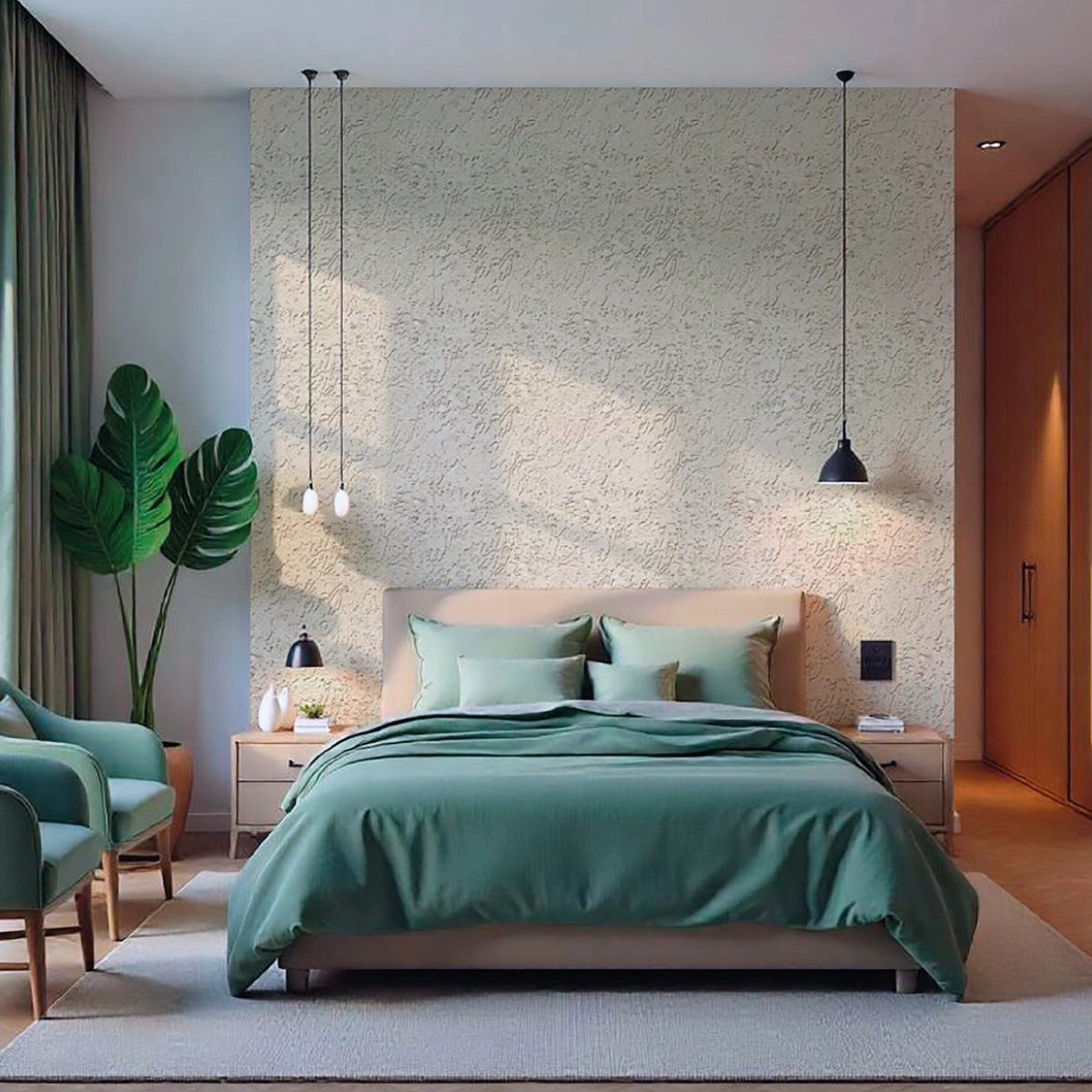 Bring calm and elegance to your bedroom with this soft cream linen-effect wallpaper – perfect for creating a cozy, modern, and refined atmosphere.