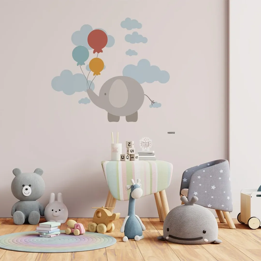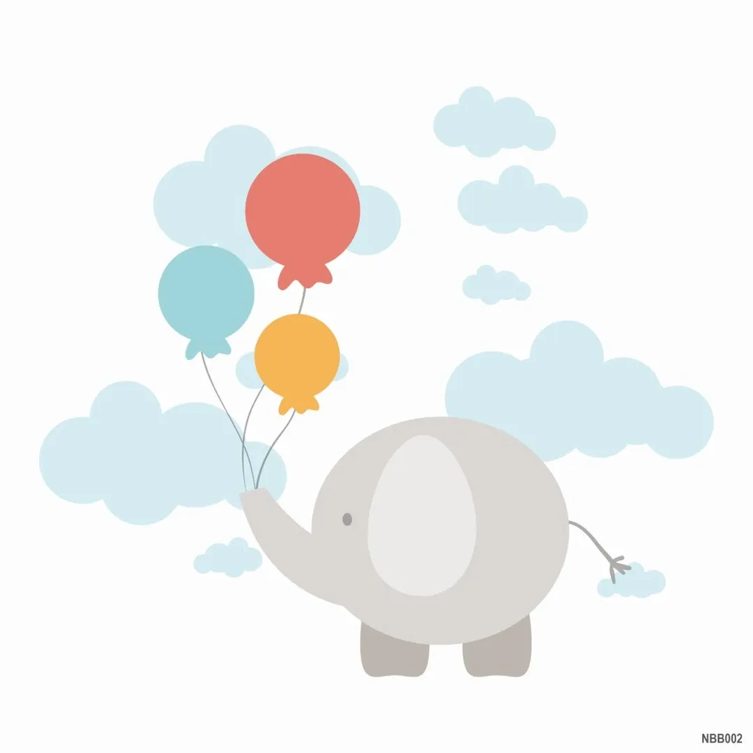 This adorable wallpaper features a sweet elephant holding colorful balloons, surrounded by fluffy clouds on a soft pastel background. Perfect for nurseries or playrooms, it creates a calming and joyful space for little ones.
