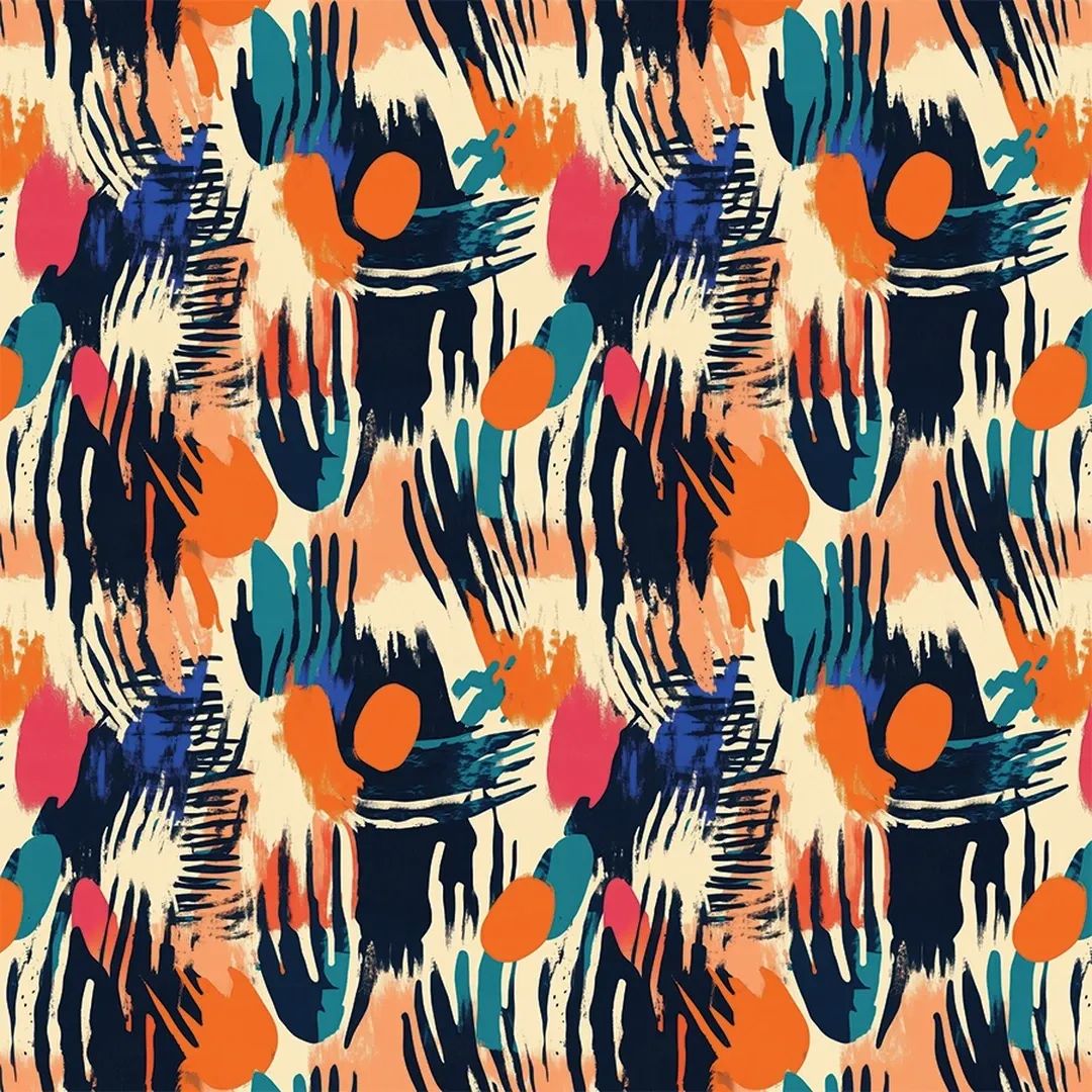 This wallpaper presents a rich tapestry of bold, sweeping brushstrokes in deep navy, burnt orange, teal, and pops of magenta. The layered effect gives it an energetic and artistic feel, resembling an abstract expressionist painting. Ideal for eclectic, contemporary, or bohemian spaces, this design adds movement and depth to any room.