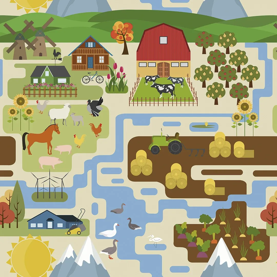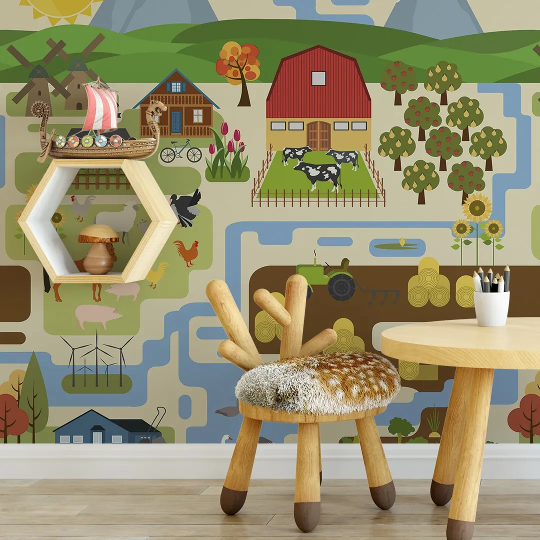 Bring the countryside indoors with this delightful farm-themed wallpaper. Featuring barns, animals, crops, and vibrant fields, it creates a peaceful and playful rural ambiance. Ideal for nurseries, children’s rooms, or anyone who loves the charm of farm life.