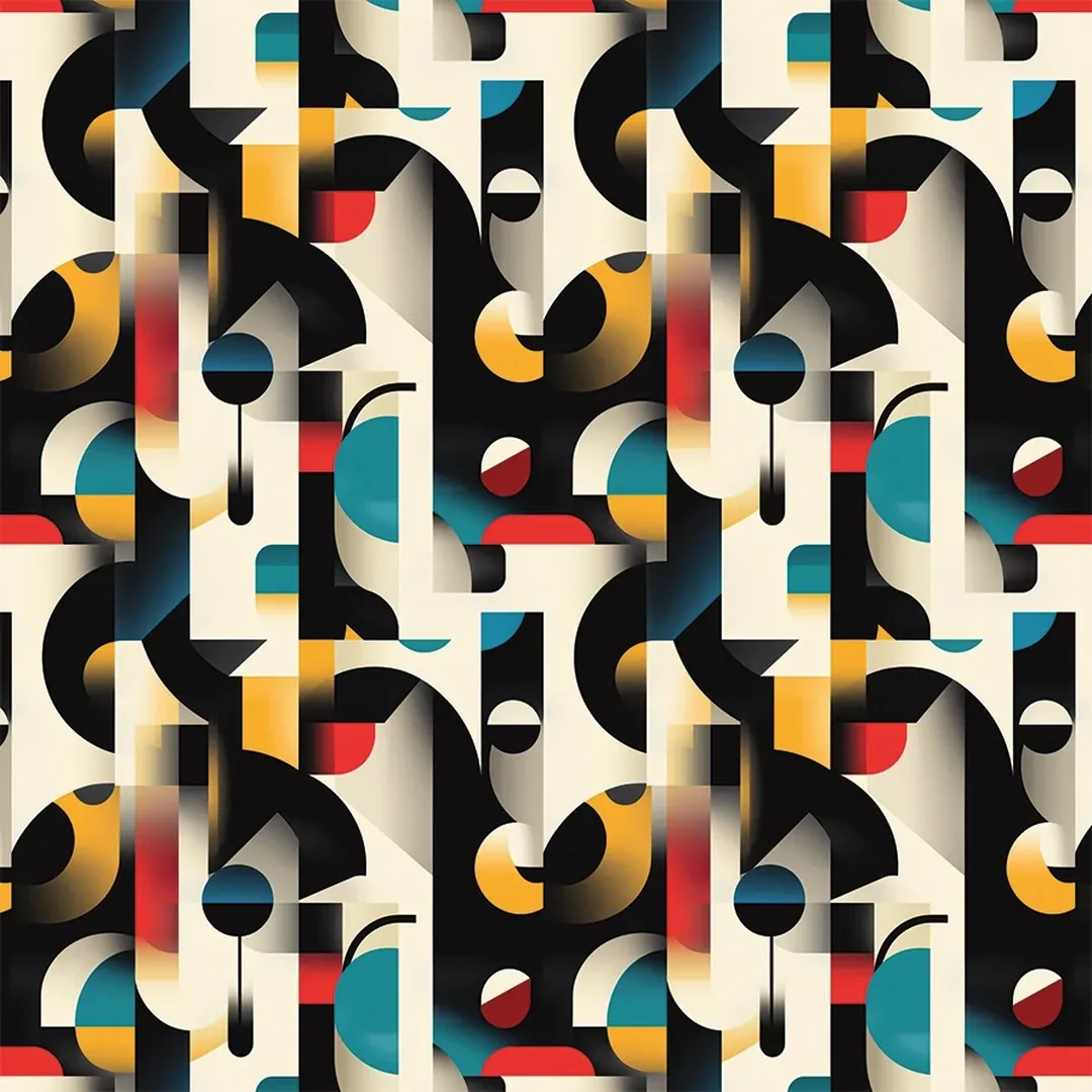 Inspired by the Bauhaus movement, this wallpaper features bold geometric shapes in a striking palette of black, gold, teal, and red. The interplay of depth, light, and shadow creates a three-dimensional illusion, adding a sense of movement and dynamism to any space.