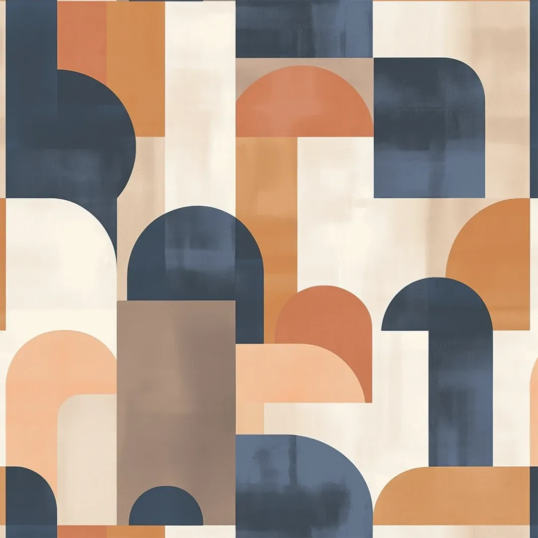 This design showcases bold, structured arches in warm terracotta, navy, and beige tones. The repeating shapes create a sense of rhythm and depth, making it ideal for modern, contemporary interiors with a retro-inspired twist.