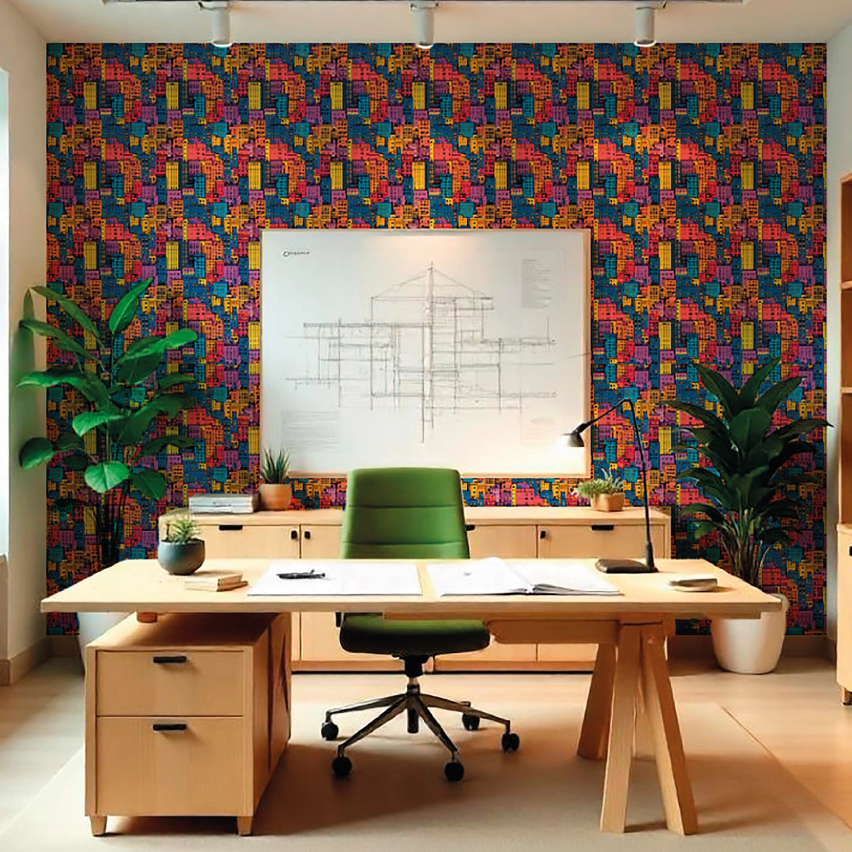Add depth and dimension to your office with this bold 3D cube-pattern wallpaper – a modern design that sparks creativity and visual interest in any workspace.
