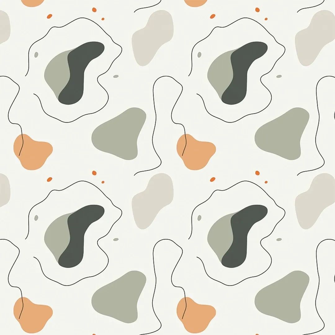A soothing and modern wallpaper featuring abstract, free-form shapes in earthy green, taupe, and muted terracotta. The delicate line details and soft organic composition create a calming and stylish ambiance, perfect for contemporary, minimalist, or Scandinavian-inspired interiors.