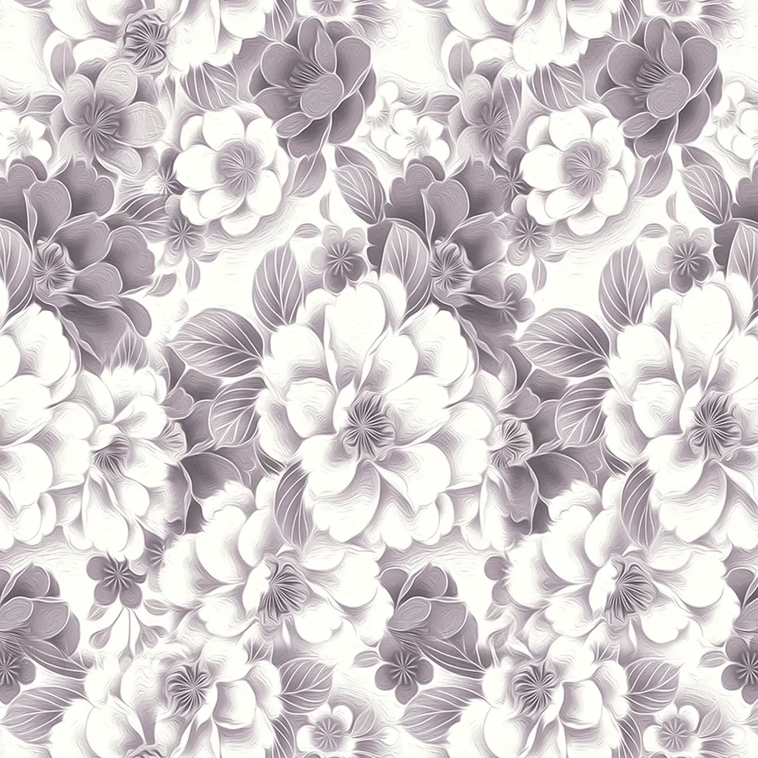 Oversized floral patterns in elegant grayscale tones for a sophisticated, modern aesthetic.