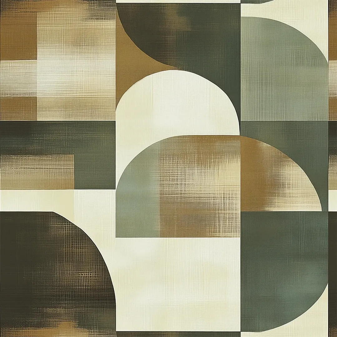 A soft geometric composition in earthy greens, browns, and beige. The subtle gradient shading and curved elements give it a contemporary yet calming aesthetic, perfect for minimalist and naturalistic interiors.