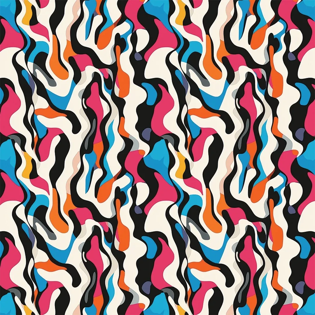 A hypnotic and energetic wallpaper with fluid, curving shapes in a striking mix of warm and cool tones. The undulating patterns create a mesmerizing movement effect, making it a bold and eye-catching choice for modern, maximalist, or retro-inspired spaces.