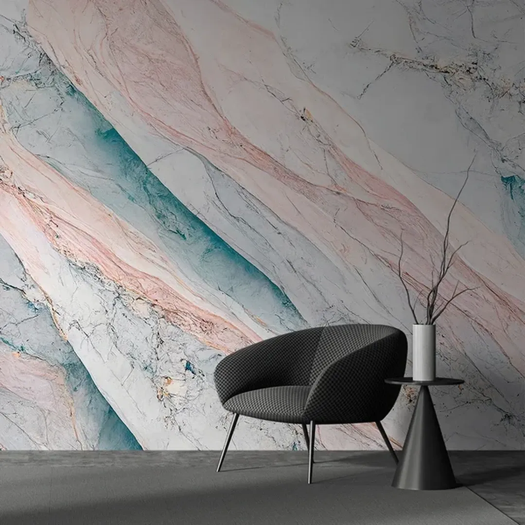 This wallpaper features soft waves of pink and blue tones, blending beautifully to create a serene and calming effect. The delicate pastel hues and marble-like textures make it perfect for adding a gentle, refreshing vibe to any room, ideal for bedrooms or relaxation spaces.