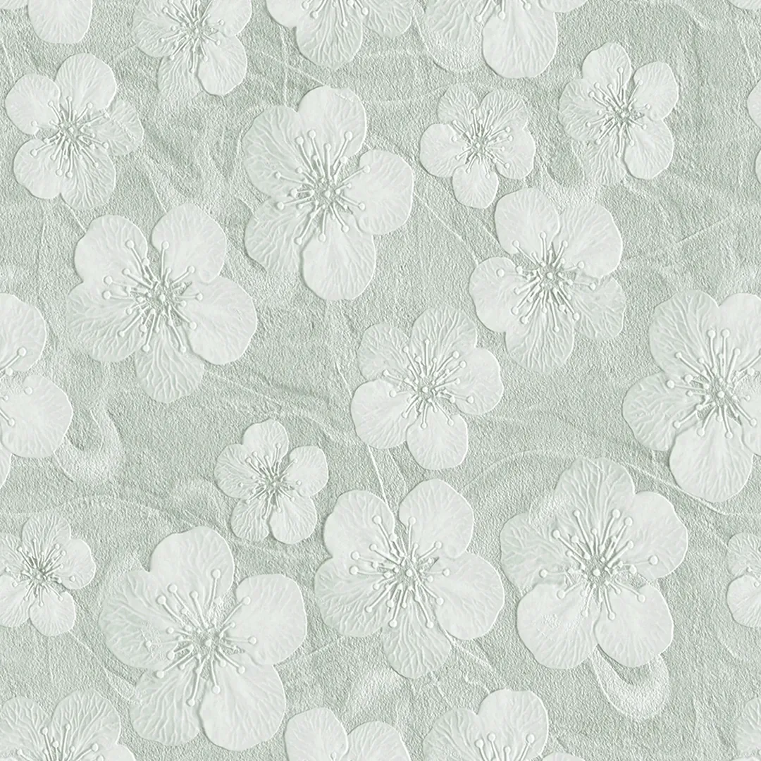 Embossed white flowers on a subtle green background for a refined and understated elegance.