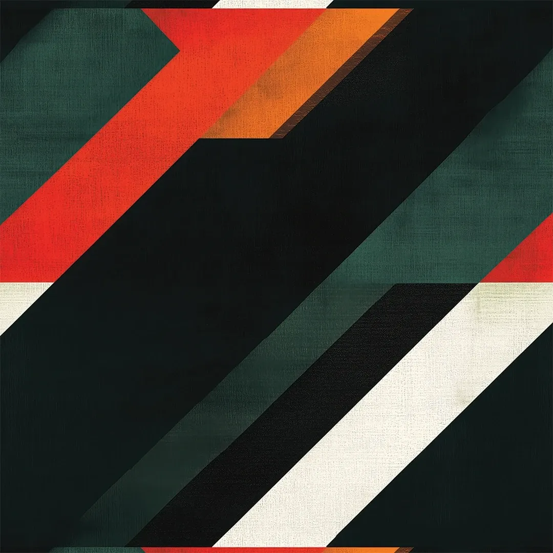 A striking diagonal composition with bold color contrasts in deep green, fiery orange, and black. The sharp, dynamic lines evoke a sense of speed and motion, making it a perfect fit for energetic and high-impact environments.